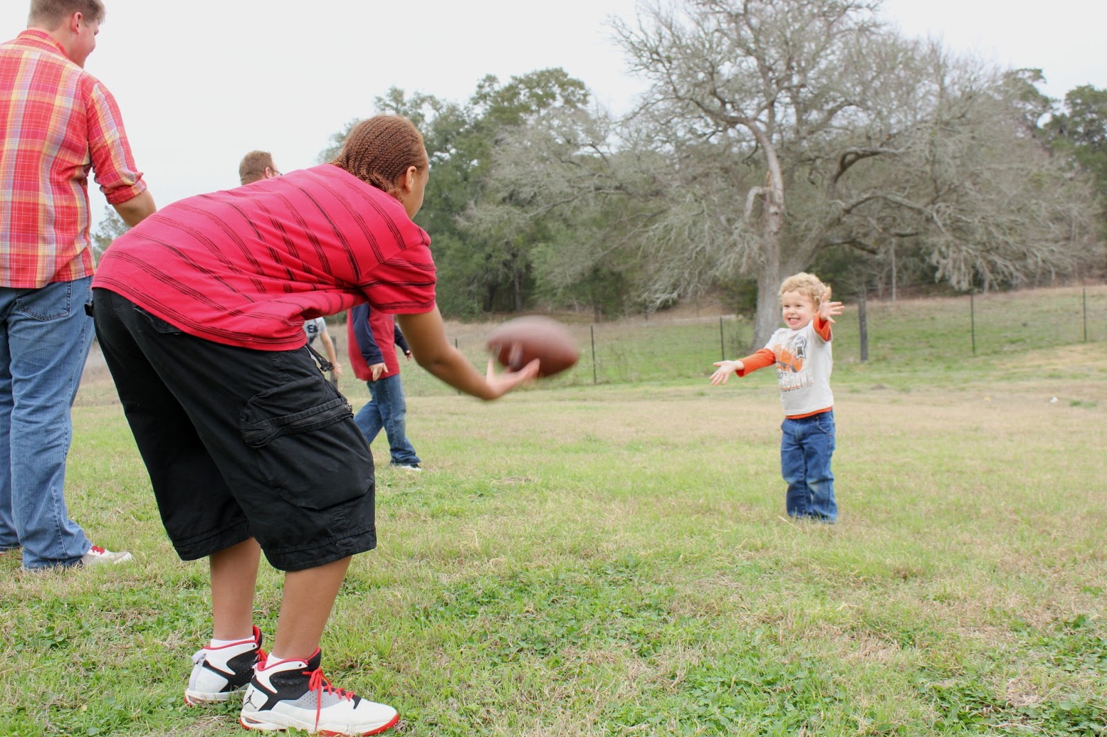 One big boy was kind enough to play toss with Brazos for a little bit before returning to his own football game. The look on Brazos's face is priceless.